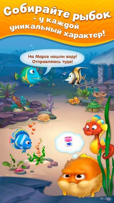 От прочих игр «три-в-ряд» Fishdom отличается тем, что здесь у вас будет собственный аквариум, а за прохождение уровней вы будете получать золото, которое можно потратить на рыбок. Рыбки в этой игре – очень милые и красивые существа, они даже могут общаться друг с другом. Вы сможете собрать огромную коллекцию рыб, причем у каждой из них будет собственная уникальная внешность.
