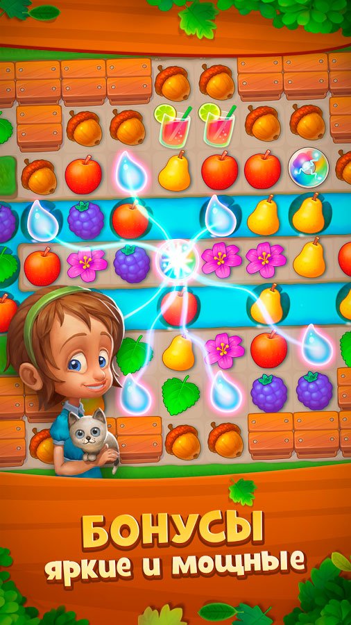 - Занимательная игра «три-в-ряд» с красивой графикой.