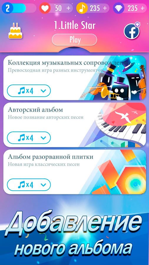 Уже миллионы игроков оказались участниками этой интересной головоломки. Не отставай и тоже решайся скачать Плитки фортепиано 2 на андроид. Это продолжение знаменитой игры, которая быстро набрала популярность. Уже сейчас во вторую часть играет больше сотен миллионов пользователей, и они от нее в восторге. Несмотря на простоту игрового процесса, первая часть смогла добиться известности и долго не сходила с ТОП игрушек. Вы должны снова подготовить свои руки и заняться улучшением реакции. Только быстрые игроки смогут пройти все уровни и показать скорость рук, с которой не сравнятся другие игроки.