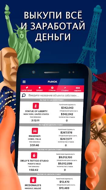 Это очень крупная экономическая настольная игра, где вы станете самым лучшим бизнесменом. Попробуйте скачать Магнат Donut Trumpet на андроид, управляйте огромным миром. Вы сможете покупать в этой виртуальной игре недвижимость самого разнообразного характера. Все эти объекты обладают уникальными характеристиками и направлениями. Заведения будут постоянно приносить вам прибыль, а получая в конце квартала деньги, они будут отправляться на счет или часть можно будет потратить на покупку новых объектов. После этого можете заниматься торговлей и повышать плату за аренду, ведь другие люди начнут снимать у вас помещения под офисы.