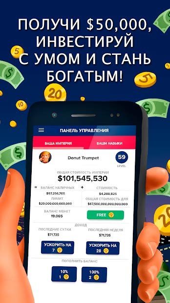 Если решите скачать Магнат Donut Trumpet на андроид сможете наслаждаться такими особенностями: