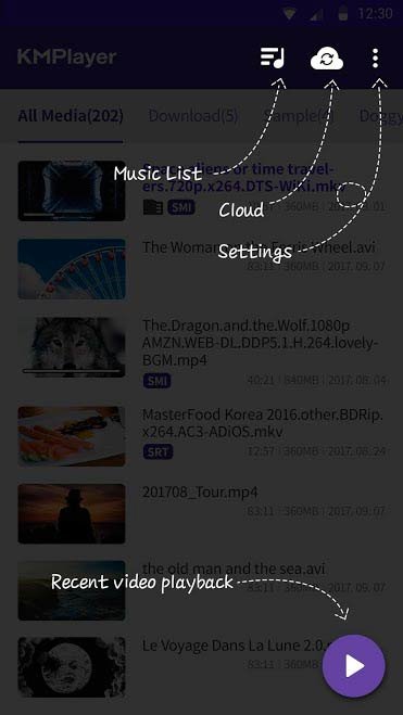 Все знают об этом уникальном видеоплеере, который получил свою первую популярность на персональных компьютерах. Теперь можно скачать KMPlayer (Play, HD, Video) на андроид для своего телефона и пользоваться оригинальными особенностями этого плеера для воспроизведения видео и фильмов. Иметь такой плеер на своем телефоне это очень нужное дело. Теперь можно будет просматривать видеофайлы абсолютно любого формата и разрешения. Смотрите свои любимые фильмы, включайте для детей мультики и воспроизводите любые короткие видеоролики и все это будет работать в высоком качестве.