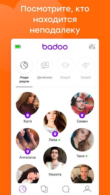С каждым днем все больше пользователей доверяют сети знакомств Badoo и находят в ней единомышленников, друзей, любовь. Здесь вы легко и просто отыщите именно того человека, который вам нужен. Независимо от места и времени – вам достаточно лишь иметь подключение к интернету и желание общаться, а дальше уже приложение сделает все за вас.