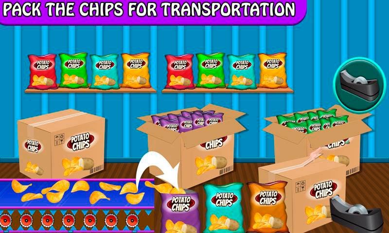 Вы будете каждый день делать настоящие картофельные чипсы в самой веселой и оригинальной игровой форме. Это будет очень просто, и вскоре вы начнете производить первые пачки вкуснейших хрустящих чипсов. Постарайтесь делать огромные объемы, чтобы добиться лучших результатов. Смешивайте вместе огромное количество ингредиентов и работайте с картофелем. Игрок должен будет его подготовить, собрать, помыть и наконец, отправить на плиту. После этого готовые чипсы нужно запаковать и отправить на склад. От такой интересной игры очень трудно оторваться и поэтому она нравится и детям и взрослым.Скачать производитель хрустящих картофельных чипсов на андроид бесплатно