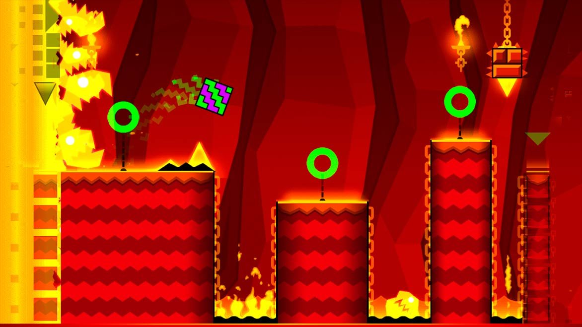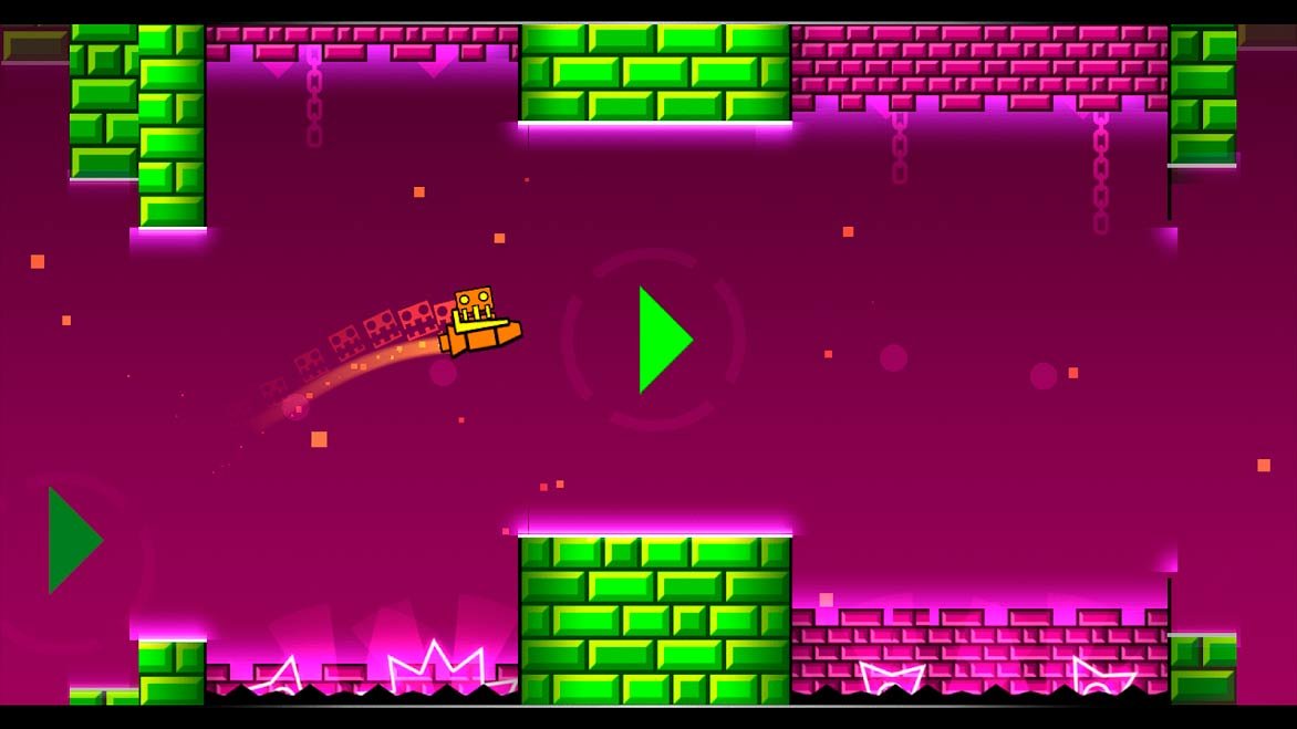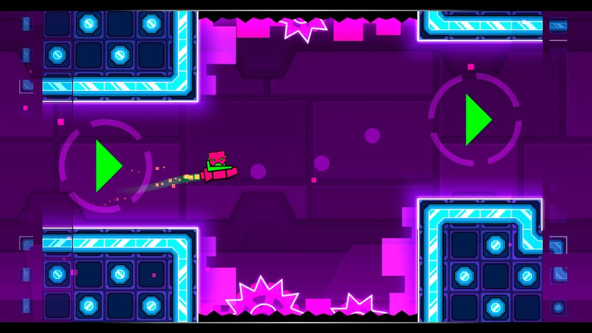 Будьте готовы вложить много времени и усилий, чтобы пройти до финала эти приключения среди геометрических фигур. Управление игровым процессом происходит с помощью одного пальца. С помощью простейших движений игроки смогут выполнять фантастические прыжки или даже взлетать высоко над атмосферой. Главное постараться, чтобы не попадать на острые препятствия, которые смогут закончить существование героя в очередной раз. Все уровни будут проходить под красивое и ритмичное музыкальное сопровождение, а именно благодаря ему можно будет наслаждаться таким потрясающим процессом. Постарайтесь дополнять постоянно своего геометрического героя, чтобы он научился еще выше взлетать и стал надежным. Остроконечные фигуры будут преследовать кубик повсюду, но он обязан справиться.