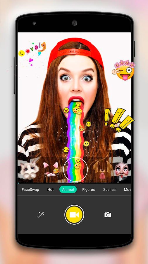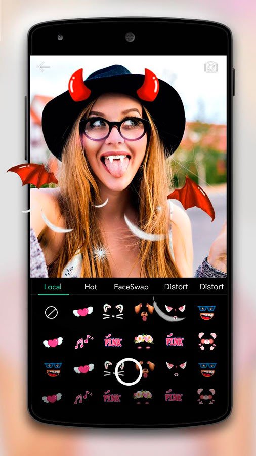 Приложение Face Camera позволяет вам запечатлеть ярчайшие моменты и поделиться ими со всеми желающими. Просто выкладывайте отредактированные фото и видео файлы в социальных сетях, и тогда все ваши друзья и знакомые смогут оценить их. В базу данных этой удивительной программы регулярно добавляются новые наклейки, картинки, темы и многие другие элементы, открывающие перед вами новые практически неограниченные возможности редактирования файлов.