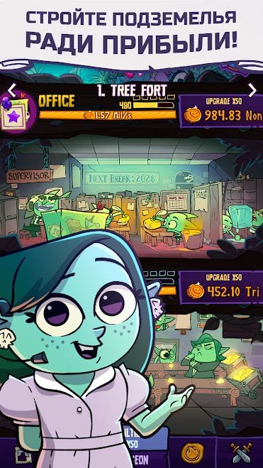 В этом виртуальном мире игрокам нужно будет осваиваться глубоко под землей, и строить здесь целый город. Попробуйте скачать Dungeon, Inc. На андроид и приступайте к освоению новых территорий. Игрок должен будет постоянно искать золотые прииски, чтобы прибыль в банке увеличивалась до невероятных размеров. Это золото понадобится для того, чтобы осваивать новые территории и закупаться новыми предметами и оборудованием. Игроку кроме всего этого предстоит отправляться на свободу и тем встречаться в мощных противостояниях с монстрами. Для этого придется в серьез напрячься и победить их всех, а после собрать прибыль и вернуться под землю героем.