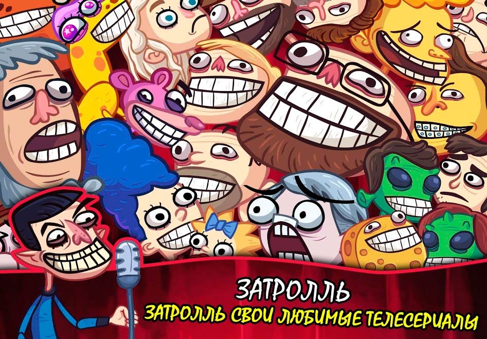 Троллфейс Квест: ТВ Шоу - новый проект, связанный с постоянными розыгрышами. Телесериалы становятся жертвой удивительной игры. Серия оказалась реально крутой и огромное количество пользователей мобильных телефонов установили ее себе. Любой игрок может заниматься троллингом любой личности. Становитесь Королем всего мира, решайте разнообразные головоломки, знакомьтесь с уникальными личностями и разыгрывайте миллионы персонажей.