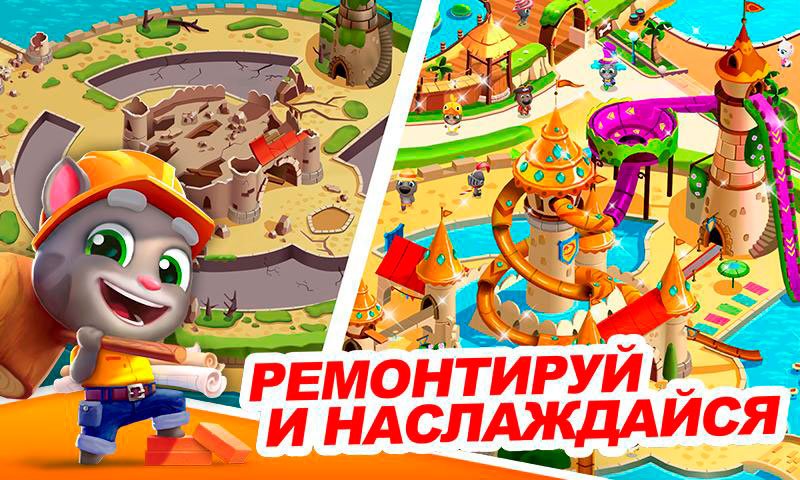 В приложении Бассейн Говорящего Тома всегда есть чем заняться. Выполняйте различные задания и получайте за это награды. Собирайте интересные бонусы, которые помогут вам в прохождении игры. За пройденные уровни выдаются специальные ключи, собрав их достаточное количество можно открыть доступ к новым местам в этом веселом аквапарке. По мере прохождения парк будет становиться все больше, в нем появятся новые развлечения и встретятся старые знакомые кота Тома, такие как говорящая Анжела, Бен, Хенк и другие. Вместе со всей этой компанией вы отлично проведете время за увлекательными головоломками.