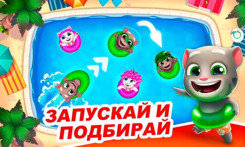 Бассейн Говорящего Тома – это новое приключение знаменитого кота Тома и его друзей. Здесь вас ждет множество интереснейших головоломок, решать которые помогут Том и его компания. Не забудьте захватить с собой костюм для купания, ведь вы приглашены в бассейн. Хватайте надувные круги и подбирайте схожие по цвету – так вы быстро очистите бассейн и сможете отлично искупнуться.