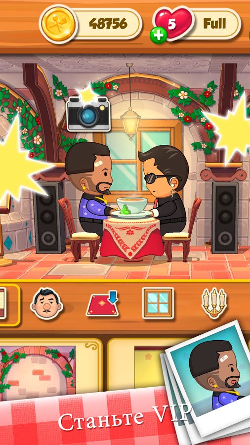 Игрок сам решает, какой из режимов ему подходит. Можете пройти длинную компанию в одиночном режиме, лишь делясь с друзьями достижениями, или устройте между собой турнир. Постарайтесь побить их рекорд и выйти в лидеры. Составляя мощные комбинации, игрок сможет получить бонусы, которых здесь больше десятка. Старайтесь забрать с каждого уровня как можно больше монеток, чтобы превратить ресторан в лучший. Зарабатывайте достижения, улучшайте свое место в таблице лидеров.Ответы на часто задаваемые вопросы
