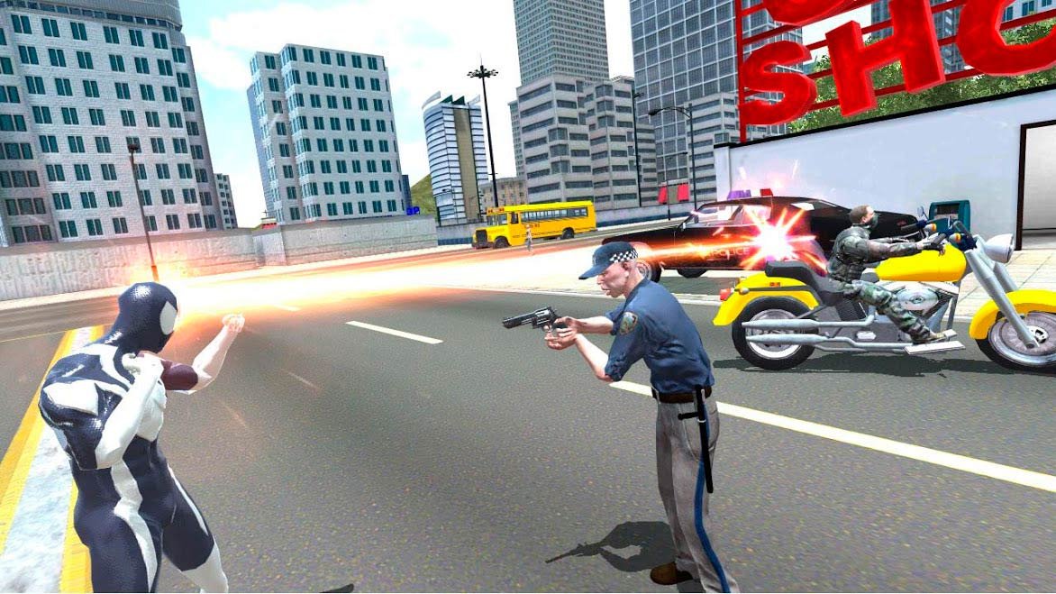 Большинство из вас подготовлены к путешествиям. При прохождении вам придется убивать людей, грабить их, стрелять из мощного вооружения, а также делать все возможное для уничтожения преступников, оказавшихся на пути. Время от времени вам будет даваться возможность кражи крутых автомобилей, передвигающихся по нашим улицам на огромных скоростях. Чтобы подняться на верхушку по криминальному миру, придется перебрать кучу кишок. Катайтесь на велосипедах, используйте ролики, самокаты и автомобили для передвижения по большому городу. При выполнении разнообразных трюков можно получить дополнительные денежные средства и очки опыта. За счет них перед вами открывается совершенно иной мир. Пользуйтесь боевым вертолетом, сверхбыстрым самолетом и добирайтесь до нужного места за считанные секунды. Скачать Amazing Strange Rope Police - Vice Spider Vegas на андроид может любой желающий, от вас ничего дополнительного не требуется.Скачать Amazing Strange Rope Police - Vice Spider Vegas на андроид бесплатно