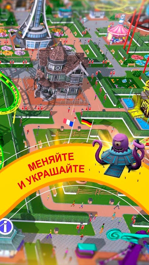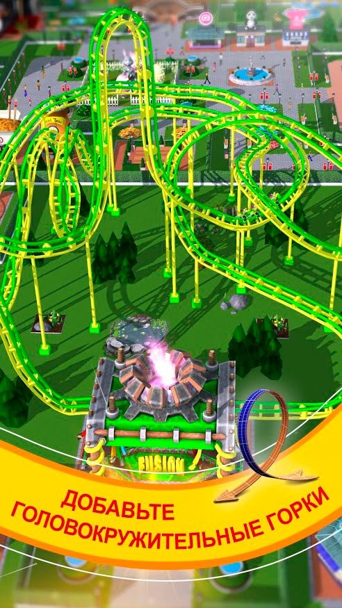 RollerCoaster Tycoon Touch - новый симулятор с возможностью строительства шикарного парка аттракционов. Развивайте парк, управляйте им, ухаживайте за большой территорией и придумывайте, как привлечь большое количество людей.