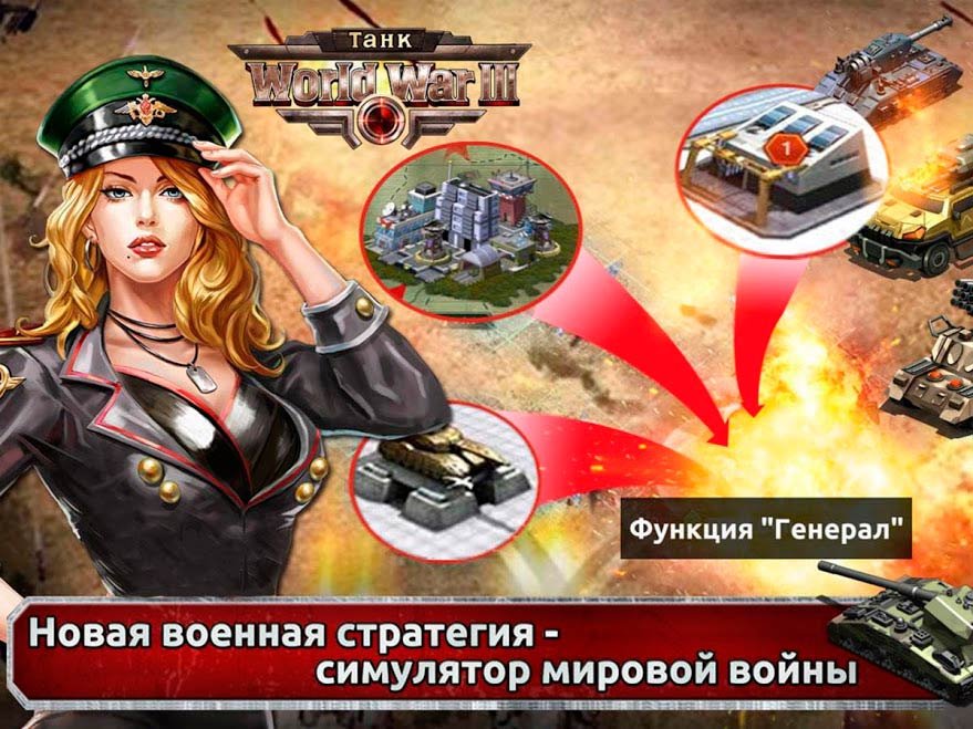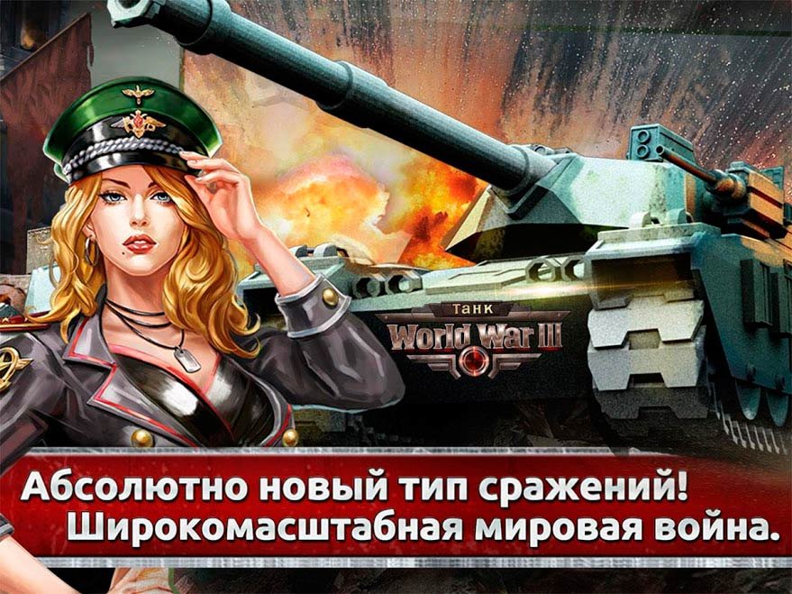 Танковые войска Российской Федерации нанесли серьезный удар. Последний удар оказался мощным, поэтому как-то противостоять ему было крайне тяжело. Привлекайте к игре близких друзей, ведь с товарищами реально проще сражаться. Боритесь до последней крови, ни в коем случае не сдавайтесь! Разработчики постоянно выпускают дополнения и обновления, за счет которых интерес к игре проявляется только больше. Создавайте уникальные танки, собирайте огромную армию, воспользуйтесь современным вооружением и многое другое. Выигрывайте все бои за счет хитрых маневров. Придумайте подходящую стратегию и ведите свои тактические подходы. Только таким образом у вас удастся подкрасться к сопернику как можно ближе, чтобы уничтожить всю его мощную армию. Готовы приступить? Тогда нужно скачать World War III: Танк на андроид устройство прямо сейчас.Ответы на часто задаваемые вопросы