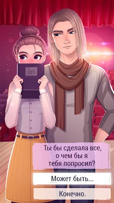 Девочки решившие скачать История про любовь игра - Подростка драма на андроид должны будут в процессе сюжета выбрать для себя достойного парня. Среди них будет очень узнаваемый актер, красивый учитель и просто одноклассник. Думай как можно тщательней, чтобы сделать правильный выбор в пользу одного из партнеров. В любой момент одно неверное движение или ответ может вовлечь тебя в запутанную историю, из которой уже будет сложнее выбраться. Каждое принятое в процессе игры решение будет кардинально влиять на жизнь и ситуацию в этой игре. Вы сможете одновременно строить отношения и собственное будущее. Иногда в игре будут встречаться и вправду напряженные ситуации, которые заставят сделать необдуманное решение. Думай и выбирай, кто станет твоим возлюбленным. Кроме этого героиня сможет завести в школе себе огромное количество друзей, которые будут влиять на ситуации и историю школьной любви. Перед стартом своего ролевого приключения придумай актуальное имя для героя и выбирай для него специальный наряд. Ты сможешь сочетать моду и комбинировать несколько разных предметов одежды, чтобы выглядеть шикарнее своих подруг.