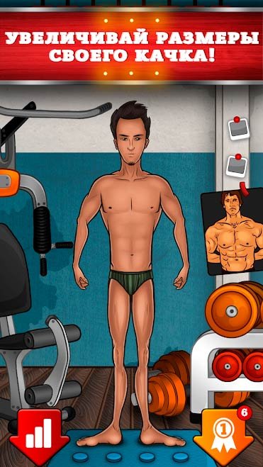 Вы еще не успели подкачаться к лету? Тогда предлагаем скачать Накачай Качка на андроид и подготовить собственную фигуру вместе с многочисленными качками. Игра подготовлена специально для таких людей. Проходите путь бодибилдера, но начинайте с самого низа. Изначально ваш персонаж будет хилым и маленьким, но через некоторое время, когда потренируется, его тело начнет набирать хорошую форму. Проходите увлекательный путь бодибилдера, показывайте собственные способности и доказывайте, что вы способны на очень многое. Накачайте собственного персонажа, соревнуйтесь с близкими друзьями и проходите режим состязания. Надеемся, что у вас все обязательно получится и вы окажетесь в списке лучших игроков. Поднимайтесь по рейтинговой таблице, становитесь сильнее и попробуйте прославиться на весь мир.