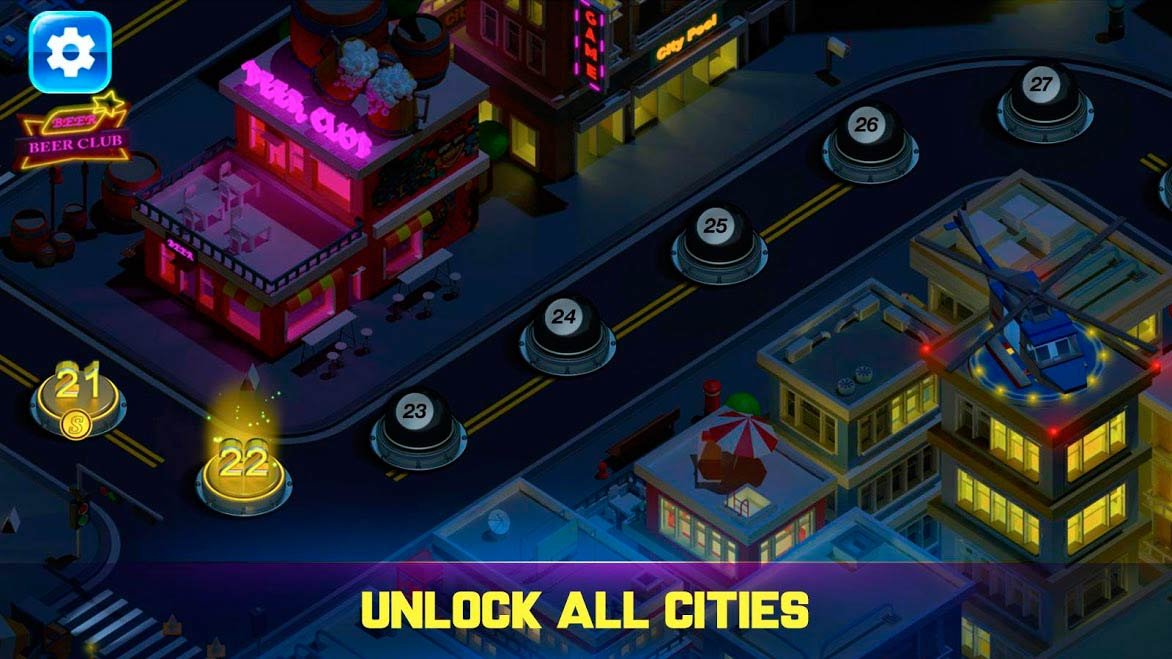 Проект обладает множеством особенностей. Игра полностью оптимизирована и дает возможность отправиться по барам города, а также выиграть все трофеи. Становитесь чемпионом большого города и с головой погружайтесь в прохождение интересного сюжета. Веселитесь, присоединяйтесь к большому количеству игроков и становитесь профессионалом своего дела. Анимация оказалась реалистичной, управление простое. В общем, скачать Бильярдный город на андроид и пройти все уровни можете только вы. Главное, хорошо постараться и подобрать собственный стиль. Управление сделано сенсорным, потому с ним проблем никаких возникать не должно. Присоединяйтесь к компании и проходите все задания.