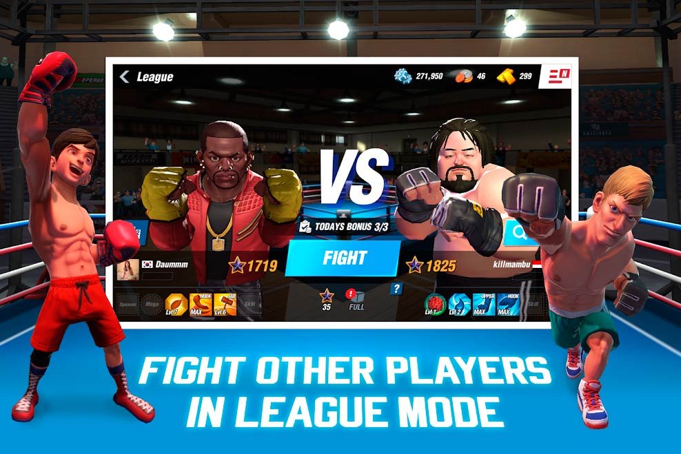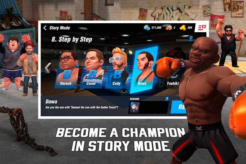 Boxing Star – трехмерный боксерский экшен с высококачественным физическим движком. Попробуйте стать одним из Чемпионов и выигрывайте эффектные бои на ринге. Вы сможете заработать и вскоре разбогатеете.