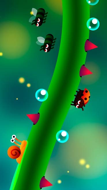 Приготовьтесь к тому, что проведете за этим игровым процессом очень много времени подряд. Такая красивая, яркая и простая игра будет интересно как для взрослых, так и для детей. Здесь нет ничего сложного, и вы это быстро поймете. Погружайтесь в эту красивую атмосферу, созданную в стиле мультика, и знакомьтесь с принципами игрового процесса. Кликайте по экрану и совершенствуйте свои навыки мастерства. Вам нужно будет постоянно наращивать скорость, чтобы проходить более сложные задачи. Старайтесь не попадать в опасности и перескакивайте на другую сторону, чтобы остаться в действии. По пути главному герою нужно будет собрать как можно больше пузырьков. Игрок решивший скачать Snail Ride на андроид узнает и про существование своих врагов. В их числе полно крутых насекомых и с ними предстоит побороться. Постарайтесь выжить в такой атмосфере и помогите улитке дойти до конца. Чтобы добиться этого вам поможет специальная слизь, ведь с ее помощью можно скользить.