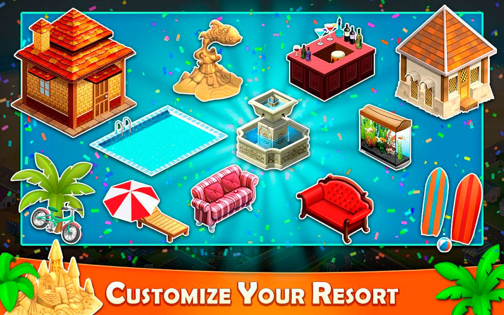 Разработчики старались сделать игру такой, чтобы нравилось всем пользователям. Почувствуйте всю простоту и легкость использования понятного геймплея и отзывчивого управления. Если сможете скачать Курортный магнат на андроид, тогда вам откроется огромный доступ к новенькому оборудованию и декорациям. Настраивайте внешний вид и дизайн своего отеля, делая его с каждым днем еще популярнее и посещаемое. В этот бизнес симулятор можно будет играть даже без подключения к интернету и при этом на абсолютно разных устройствах мобильных платформ. Начинайте восхождение к верхам прямо сейчас и добьетесь легендарных наград.
