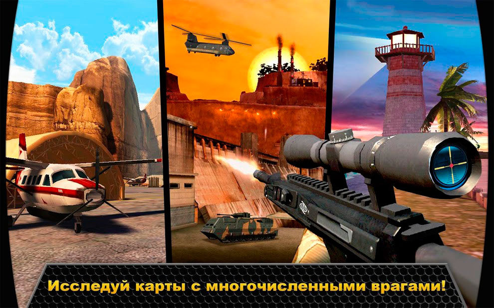 Начинайте участвовать в специальных операциях, проходящих по всему миру, и устраняйте огромное количество врагов. Если вы любите чувствовать опасность и испытывать экстремальные ощущения, тогда вам предстоит участвовать в эксклюзивных миссиях. Убивайте огромное количество врагов по всему миру и добивайтесь успеха в соревнованиях. Только используя сверхмощное вооружение, можно будет дойти до цели быстрее и стать лучшим в мире снайпером. Возможно, в конце игрового процесса вас назовут самым лучшим снайпером во всем мире. Найдите своего врага прямо в тылу и постарайтесь победить его. Все цели естественно будут скрытыми, а значит, придется приложить максимум усилий для их устранения. Попробуйте скачать Kill Shot на андроид и наслаждайтесь мощной игровой графикой в трехмерном формате. Вам должна понравиться эта оригинальная реалистичность игрового процесса и крутой физический движок.