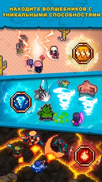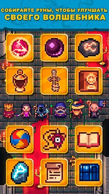 На данный момент собрано больше трех десятков оригинальных и по-своему мощных заклинаний и каждое имеет свои преимущества. Естественно хорошему игроку нужно будет изучить их, чтобы знать точно, как потом использовать при столкновениях в сражениях против монстров на пиксельных картах. Каждое из доступных заклинаний из Tap Wizard RPG: мистический квест можно будет прокачать до максимального пятого уровня и тогда оно будет очень мощным. Многим нравится наслаждаться игрой при помощи кликов ведь это действительно позволяет отдохнуть, снять стресс и расслабиться.Скачать Tap Wizard RPG: мистический квест на андроид бесплатно