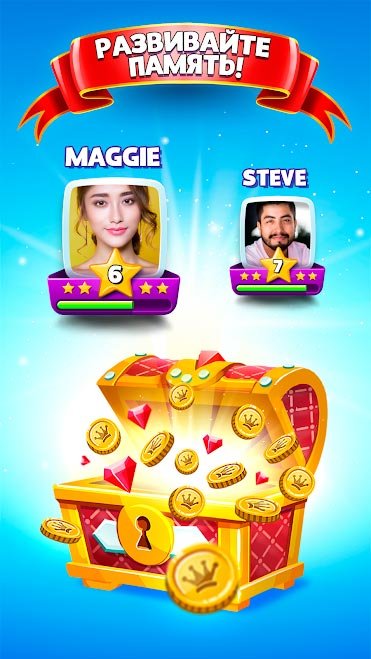 Возможно, это единственная головоломка, которая проходит в стиле жанра на запоминание и обнаружение парных карточек. К тому же ее уникальная возможность заключается в том, что участвовать можно будет через режим реального времени. Вам нужно обязательно попробовать MatchUp Friends: Find Pairs in a Fun Memory Game и уже станет нереально оторваться. Используйте качественные столы для игры, которые понравятся вам больше всего. Каждый сможет оформить свою игру так, как только ему захочется. Миллионы игроков по всему миру каждый день ищут новых соперников, и одним из них вскоре станете вы. Обязательно вступите в клан друзей, потому что вместе удовольствия будет в несколько раз больше.Скачать MatchUp Friends: Find Pairs in a Fun Memory Game на андроид бесплатно