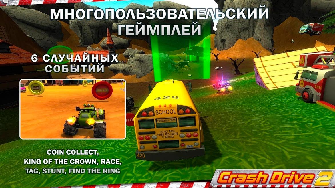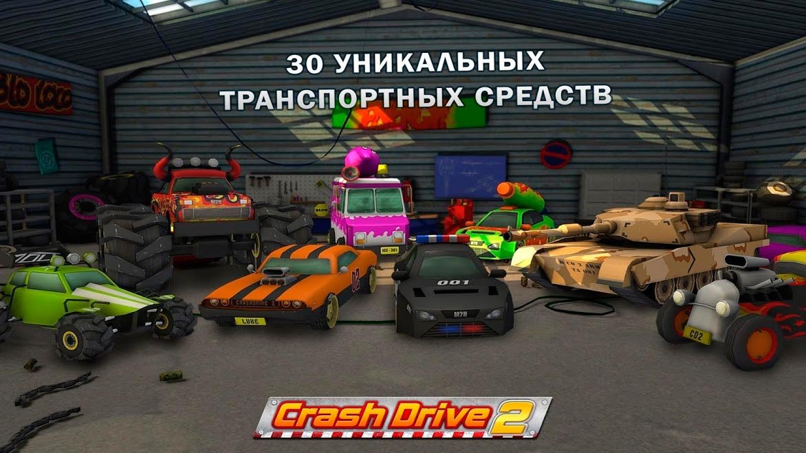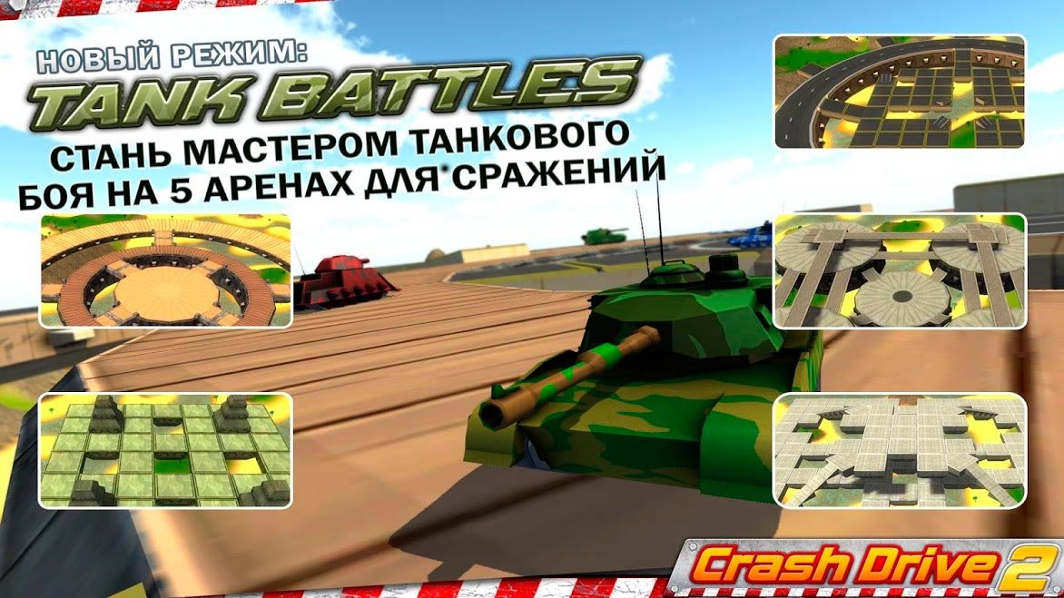 Эти безумные гоночные режимы просто переполнены разнообразными возможностями, что позволяет игрокам наслаждаться атмосферой до полного погружения. Играющие в Crash Drive 2 - гоночная игра смогут даже попробовать пройти режим танкиста, где несколько соперников сталкиваются в мощных баталиях и только один останется целым. Почувствуйте всю глубину и серьезность такой боевой атмосфере, чтобы ежедневно зарабатывать еще больше бонусных баллов и улучшать уровень своего танка. Приглашайте друзей и создавайте новые заезды для вас, где сможете показать, что вы самый сильный.