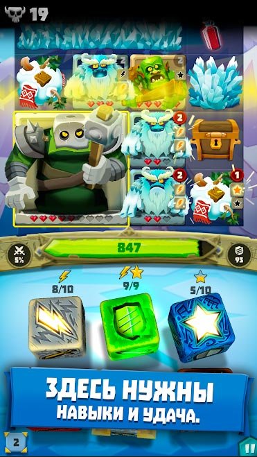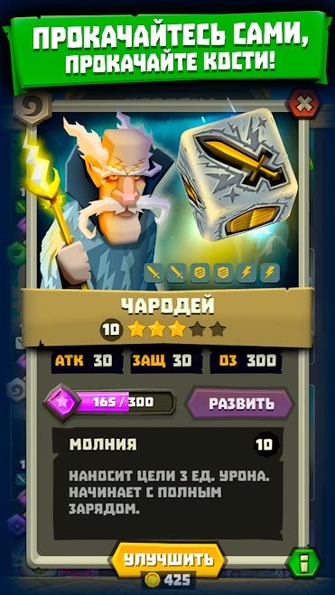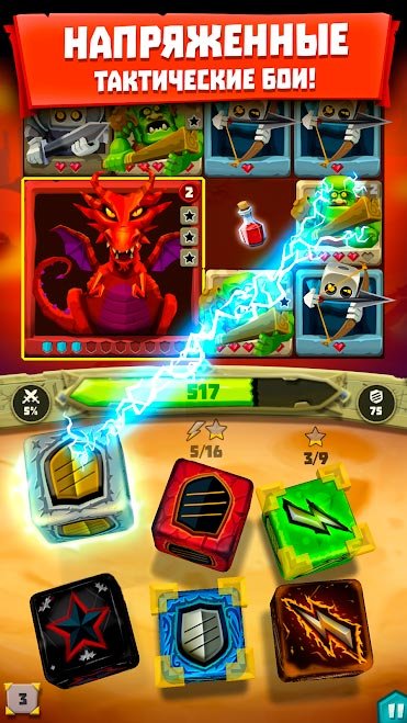 После знакомства с этой игрой вы поймете, что она лучшая из всех игральных костей, которые только есть на мобильных устройствах. Начните свое первое сражение и побеждайте против жестокой войны с монстрами. На каждом очередном уровне в Dice Hunter: Dicemancer Quest нужно будет включать голову, и думать над прохождением целого ряда задач. Закрепите кости и бросайте их, пока не получится собрать самую мощную комбинацию магических приемов. Создайте лучшую команду для войны и проработайте до невозможного свою стратегию. Постоянно улучшайте уровень своих костей и добавляйте к ним новые магические заклинания для улучшения показателей.Скачать Dice Hunter: Dicemancer Quest на андроид бесплатно