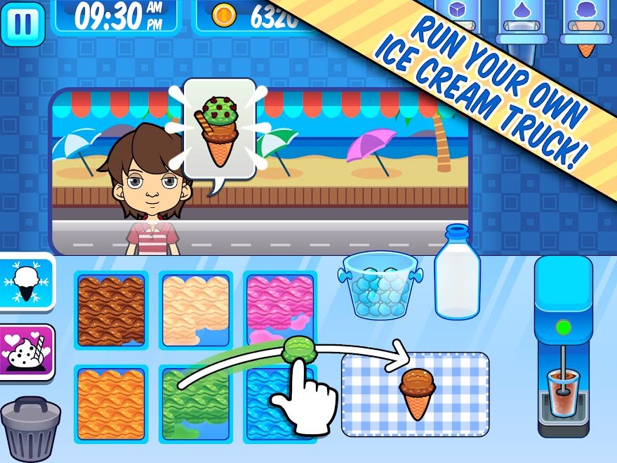 Начните с создания простейшего вида мороженого и в последствие переходите к более сложному сочетанию вкусов. Вскоре игроки как настоящие профессионалы смогут создавать шоколадные, клубничные и ванильные мороженки, которые полюбят новые клиенты. Не бойтесь смешивать множество специальных ингредиентов и даже делайте напитки, утоляющие жажду посетителей. Благодаря простоте управления My Ice Cream Truck – Игры будет очень простой, но наращиваемый с каждым новым уровнем темп вырастет в несколько раз. Постарайтесь накормить всех и выиграйте огромное количество достижений и наград.