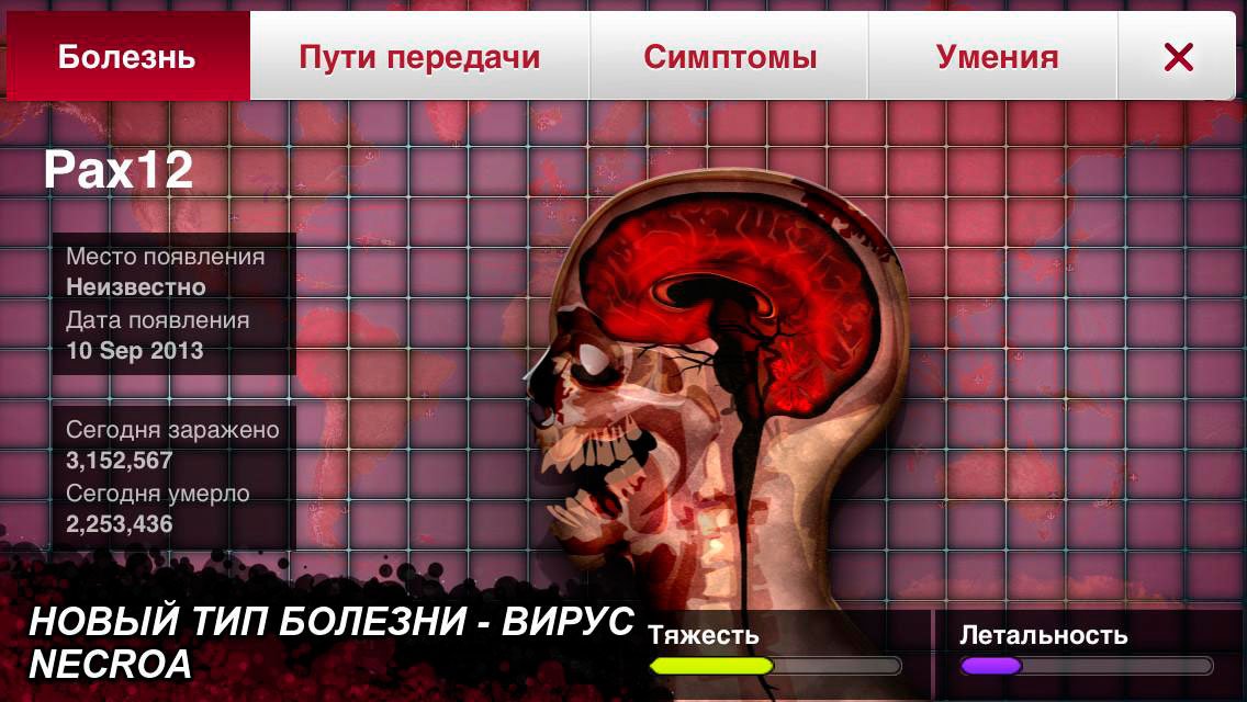 В этой игре показан огромный мир, который связан серьезными проблемами здравоохранения. Игра не просто так была признана хитом и получила 200 миллионов скачиваний. Играть в нее не просто увлекательно, а интересно. Сразу затягивает в игровой процесс на множество часов без отрыва. Вы должны разрабатывать стратегию, по которой будет двигаться вирус. Он должен облететь весь земной шар, побывать в Америке, России, Африке и других материках и странах.