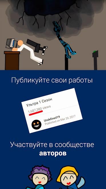 Естественно сейчас вы думаете что создавать мультфильмы это очень сложное и практически невыполнимое дело, но на самом деле все может быть гораздо проще, если под рукой есть Рисуем Мультфильмы 2. Теперь вы легко и просто сможете создавать новые мультики всего лишь в пару касаний экрана. Дальше будет важен абсолютно каждый будущий и сделанный шаг. Следуйте по большому количеству этапов и уровней, создавая самые настоящие шедевры, восполняющие на экране вашу фантазию. Придумайте своего собственного персонажа, который должен будет действовать в мультике. Когда ваш мультяшный герой будет полностью создан, его можно будет использовать в создании мультика. Вместе с Рисуем Мультфильмы 2 абсолютно каждый сможет стать режиссером и в результате получит великолепный мультфильм, основанный только на вашем сюжете. Согласитесь вы и подумать не могли, что все будет настолько просто как сейчас.