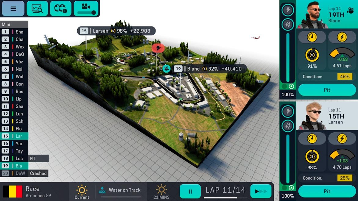 Приступайте к работе прямо сейчас и проведите мощную компанию по раскрутке. Выпускайте свои автомобили и следите за тем, как они будут покорять новые спортивные трассы. Придумайте, как правильно должны работать ваши механики в пит-стопе и эта стратегия может стать для вас идеальной и решающей в победе на очередном Чемпионате. В Motorsport Manager Mobile 3 можно своими глазами следить за тем, как проходят гонки. Не только мощные тачки, профессионалы в компании помогут побеждать, но и собственная стратегия. Нужно предусматривать все, что происходит перед гонкой, включая погодные условия, аварийность и моменты, когда машин может внезапно сломаться.