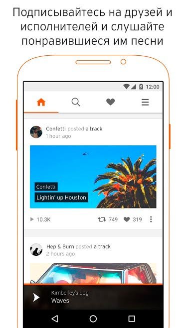 Будь первым, кто узнает о выходе новеньких треков твоих популярных исполнителей и делись с друзьями. Миллионы разных треков из множества жанров будет доступно в бесплатном формате. Пользователи могут спокойно пользоваться интеллектуальной поисковой системой SoundCloud – музыка и звук и находить именно те треки, что были нужны. Кроме того можно выбрать поиск по отдельным категориям и жанрам, а также странам. В общем, став обладателем такого приложения у вас навсегда пропадет желание листать тонны страниц в поисках свежих треков. Опубликуйте найденную новинку в социальной сети и ваши друзья будут благодарны.