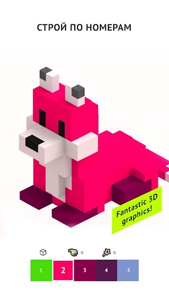 Постройте в этой игре любую трехмерную модель из сотен. Здесь есть супергерои, машины, животные и множество всего другого. Воспользуйтесь дополнительными предметами и бустерами, чтобы закрашивать доступные вам пиксели намного быстрее. Можно долго получать удовольствие от реалистичности такой трехмерной графики и моделей на экране мобильного. В Pixel Builder каждый новый шедевр сможет стать легендарным и крутым. Как только вы сможете создать свою модель, поделитесь ею через социальные сети с друзьями, которые обязательно оценят ваши творческие таланты. Кроме того можно дополнительно использовать разнообразные фильтры света или тени.Ответы на часто задаваемые вопросы