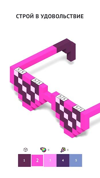 Все мы в детстве любили раскрашивать, но каждый любил определенную тематику. Кому-то нравилось раскрашивать животных, а кто-то любил насыщать красками машины. Теперь неважно, какая тематика ближе всего к вам, потому что в Pixel Builder можно будет раскрашивать все что угодно. Зачем красить на бумаге, когда есть виртуальные игровые приложения. более того, уже и пиксельные раскраски не в тренде, а вот трехмерные самое то и каждый желает попробовать сыграть в такую. Откройте совершенной новый формат графики, где из пикселей вы сможете составлять полноценные трехмерные рисунки. Сотни разнообразных трехмерных рисунков будет доступно здесь, и каждый вы сможете наполнить насыщенными красками и цветами. Открывайте благодаря Pixel Builder в себе новые таланты. Идите пошаговой тактики и составляйте новые шедевры, а также в деле выбирайте свои определенные стратегии. Пиксели могут быть абсолютно любой расцветки.