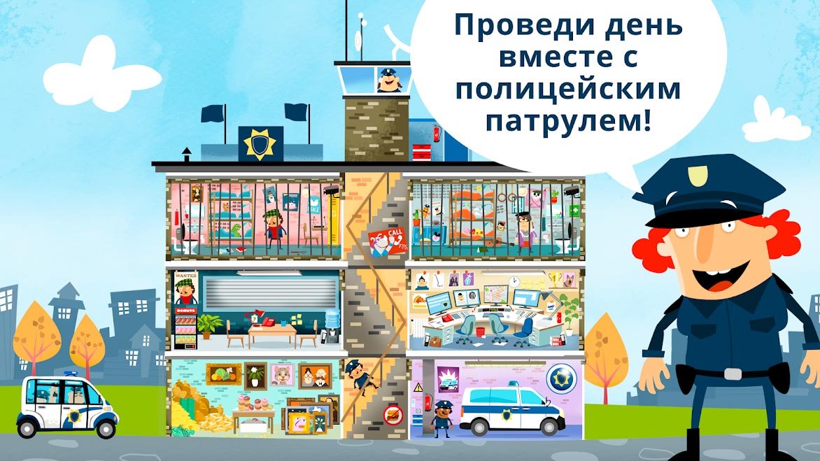 Вместе с этой веселой игрой дети смогут познакомиться с самой обычной жизнью полицейского и будут иметь свое собственной отделение, где проведут очень много времени. Можно каждый день патрулировать улицы этого крупного города и искать новые преступления. Если станет известно о совершенном ограблении или воровстве, тогда Маленькая полиция должна взяться за дело и любыми способами поймать нарушившего законы гражданина. Постарайтесь не только отловить уже нарушивших преступников, но и предотвращайте только запланированные дела. Постарайтесь оказаться в банке намного раньше, чем туда нагрянут воры, мечтающие его ограбить. Точное также это касается и музеев, а если вы не успеете, тогда нужно будет сесть за руль полицейского патруля и направиться в погоню за злодеем. Каждый день Маленькая полиция будет узнавать о новых преступлениях, и расследовать новые дела. Все это проходит в привычном для детей ритме и позволяет получать множество полезных знаний и навыков, которые могут оказать им поддержку в дальнейшем.