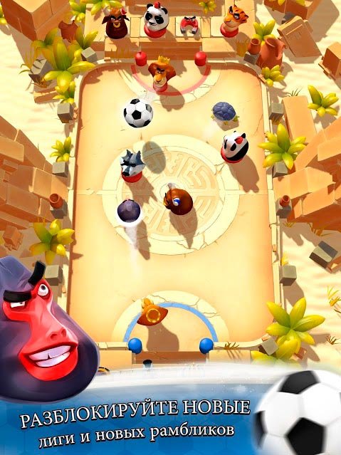 Отличный физический движок и удивительно красивая трехмерная графика сделают любого игрока поклонником именно этого футбола. Управлению игрой очень просто обучиться и это сможет сделать даже новичок. После этого в Rumble Stars Soccer начинается самое сложное и заключается оно в соревнованиях против лучших спортсменов фантастического мира. Встречайтесь с ними на аренах и пытайтесь выиграть футбольный поединок. Собирайте самую лучшую команду из таких персонажей как рамблики и они похожи на животных. Собрав из них максимально эффективную команду, вы сможете оформить себе проход в очередную лигу или даже станете чемпионом. Каждая встреча с соперниками пройдет в режиме реального времени. Попробуйте стать лучшим в баталиях Rumble Stars Soccer и заполучите важные для себя награды.