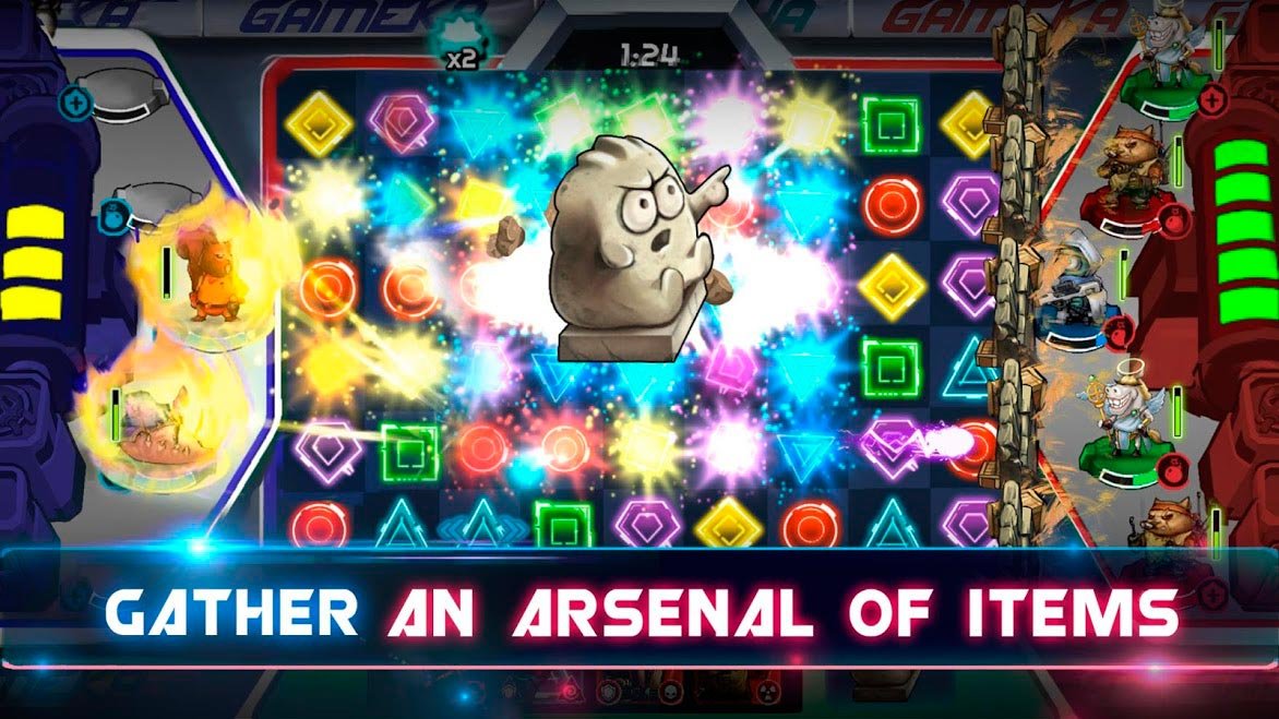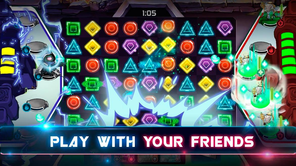 Приготовьтесь к очень динамичному геймплею, а в процессе собирайте комбинации, как можете быстрее. Вам нужно будет взять под управление целую команду из героев и узнать об их характеристиках. Прокачивайте каждого из них каждый день и увеличивайте боевой потенциал. Только благодаря удачно собранным комбинациям из пяти или больше элементов вы получите бонусы, а за их счет можно произвести сокрушительный удар по сопернику. Пользуйтесь невообразимо огромным арсеналом вооружения и не забывайте про защитную экипировку. Отличительная особенность этой головоломки заключается в PvP сражениях с игроками по всему миру или своими друзьями.