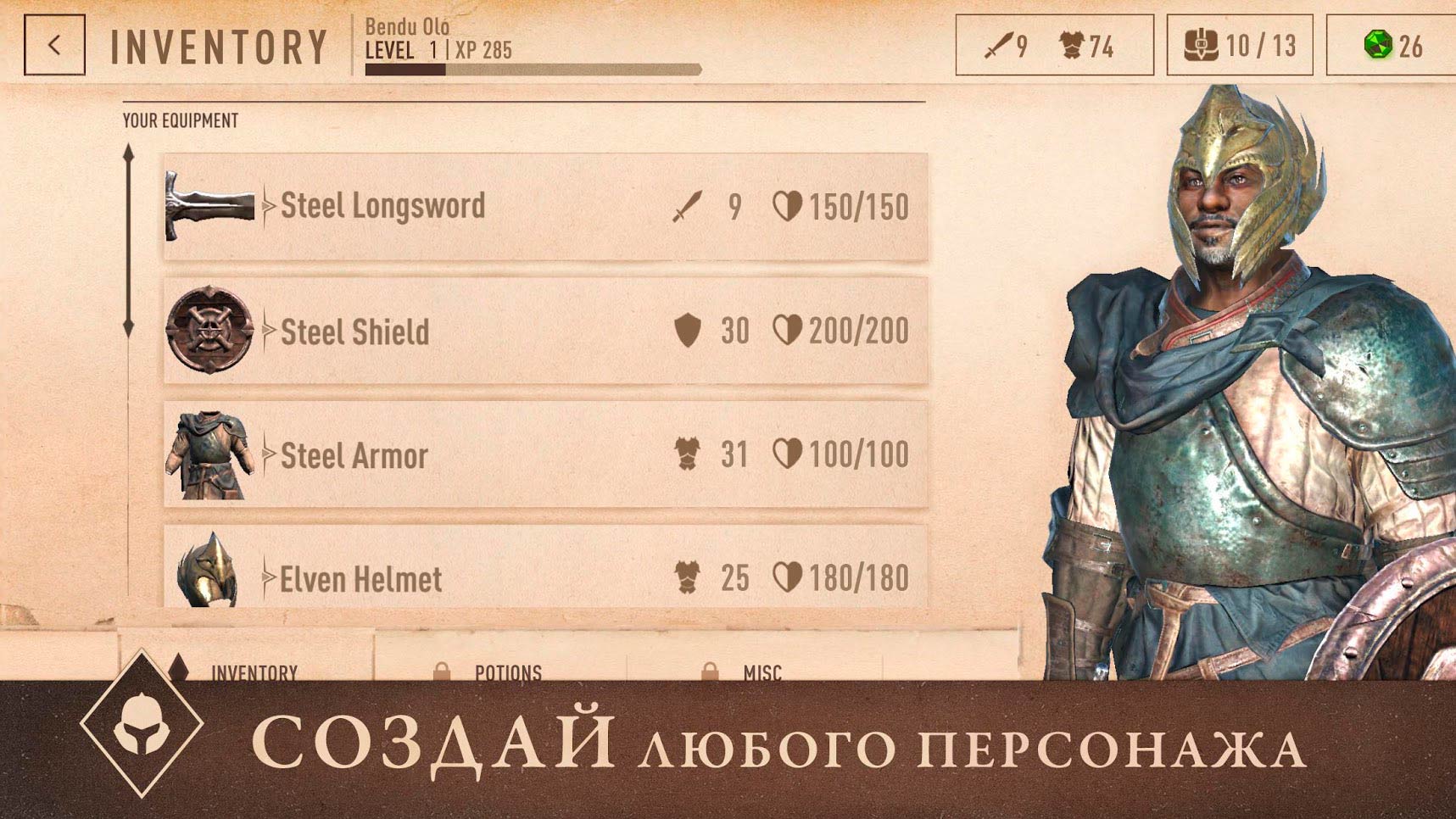 Самостоятельно игрой сможет заниматься строительством огромной Империи и сможет возродить ее легендарность и великолепие. Сражайтесь через многопользовательский режим игры и встречайтесь со своими друзьями в этом огромном мире. Вы сможете завести и новых друзей и побеждать на арене в глобальных битвах. Вживайтесь в потрясающий мир The Elder Scrolls: Blades и начинайте демонстрировать перед всеми свое мастерство и силу. Снаряжайтесь мощной экипировкой и участвуйте в напряженных боях. Очень красивая трехмерная графика, практически такая же, как на персональных компьютерах.
