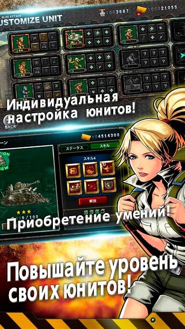 Простое управление игрой от легендарных мобильных производителей будет доступно каждому игроку. Здесь нет ничего сложного, и вы легко освоитесь со стратегией. Само игровое окружение в METAL SLUG ATTACK сделано в ретро двухмерной графике из пикселей, какая была раньше на классических приставках. Наслаждаться анимацией можно бесконечно долго и смело вступать в сражения против лучших игроков по всему миру. Воспользуйтесь уникализированной системой поддержки и придумайте собственную индивидуальную стратегию. Она будет высокоэффективной и поможет вам добиться превосходства над соперниками. В этой стратегии невероятно огромное количество захватывающих и напряженных миссий, в которых нужно проводить атаки. Нападайте на военные базы своих соперников в METAL SLUG ATTACK и выигрывайте ресурсы. Вы сможете сыграть в любом из пяти доступных режимов и пройти сюжетную компанию. Освобождайте заложников по всему миру, охотьтесь за сокровищами или пройдите боевую школу.
