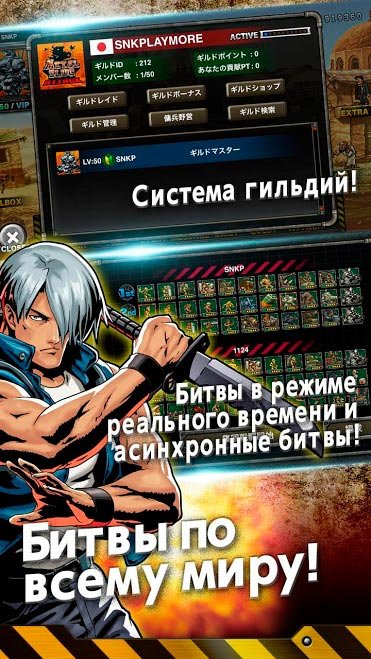 Поклонники режима мультиплеера могут подключиться к режиму игры в реальном времени, где огромное количество пользователей каждый день сражается за звание героев и они не боятся сумасшедших битв. Выигрывайте награды и дополнения, чтобы прокачать уровень своего боевого мастерства и проходите миссии. Приглашая друзей в METAL SLUG ATTACK, можно будет создать собственную Гильдию и тогда вместе с друзьями участвовать в специальных сражениях. Естественно, за успех в таких игроки получат намного больше наград и подарков, которыми можно свободно пользоваться.Ответы на часто задаваемые вопросы