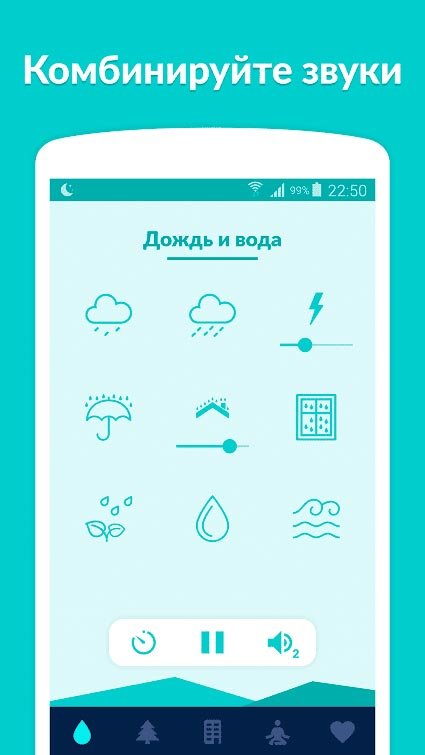 Прямо сейчас пользователи могут получить доступ к более чем 30-ти разнообразным успокаивающим и расслабляющим звукам. Все они разделены всего на четыре группы и в каждой есть особенные мелодии. Например, можно выбрать звук дождя, природы, города или специальные композиции, помогающие в медитации. В последней категории Sleepo: расслабление и сон будут доступны звуки пианино или белого шума. Все это очень удивительно и если вы раньше подумать не про то, что избавиться от бессонницы можно было вот таким простым способом, тогда должны попробовать это приложение.