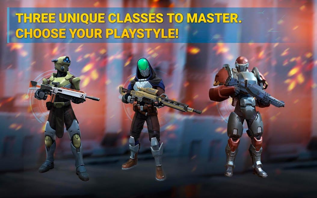 Этот огромный фантастический мир принимает игроков прямо сейчас и каждый сможет сражаться с лучшими героями по всему миру. Разделяйтесь на команды с тремя бойцами и выдвигайтесь на арены, где в режиме онлайн пройдет ваше соперничество с оппонентами. Став участником Aftermath - Online PvP Shooter игроки могут почувствовать, как захватывает дух и поднимается напряжение от войны. Игрок сразу должен познакомиться с сюжетной линией и историей игрового процесса. Огромная корпорация наемников решила разделить мир на несколько частей, и поэтому образовались команды, постоянно конкурирующие в напряженных войнах. Игрок должен присоединиться к этой масштабной войне и попытается выиграть награды. Соберите друзей вместе и создайте одну очень мощную команду. Вместе вы сможете придумать грандиозную тактическую установку в Aftermath - Online PvP Shooter, которая поможет вам добиться преимущества. Соберите как можно больше экипировки и вооружения, чтобы враги при одном только виде начинали дрожать.