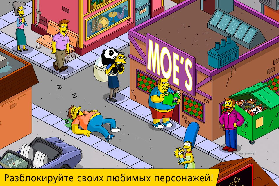В ходе прохождения сюжетных миссий игрок поймет насколько много у этой игры интересных особенностей и преимуществ. Это действительно самое веселое приключение, от которого будет трудно оторваться, хотя бы потому, что здесь участвуют любимые герои. В ходе строительства города игрок, который смог скачать The Simpsons: Tapped Out на андроид, сможет познакомиться со всеми жителями Спрингфилда. Фландерса, Жирного Тони, Мо – всех этих персонажей и многих других нужно расселить по своим местам. В этом будет помогать семья Гомера – Лиза, Барт, Мэгги и Мардж. Одевайте своих персонажей в смешные костюмы, просматривайте забавные сценки и просто получайте удовольствие от процесса игры.