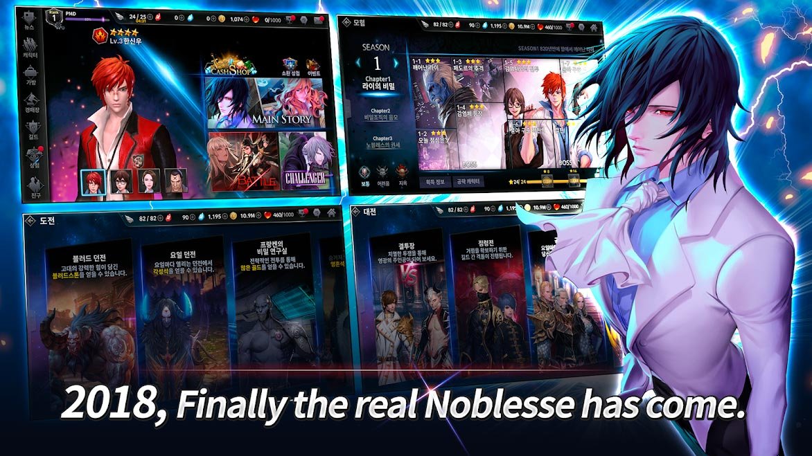 Очень мощный графический движок позволяет игрокам вдоволь наслаждаться графическими возможностями такой игры. К тому же здесь просто шикарные визуальные эффекты, каких не встретишь в остальных играх. Посмотрев на графику в игре Noblesse M Global игроки уже не смогут перейти на другую. Она действительно очень похожа на кинематографическую и это нравится пользователям, ведь на данный момент времени это большая редкость. Пять совершенно новых героев со своими особенностями характера и способностями. Все они серьезно отличаются во внешнем виде и обладают сверхмощными способностями. Выбирайте любого героя и начинайте проходить увлекательную сюжетную компанию, которая никого не оставит равнодушным. Сразу несколько эпизодов Noblesse M Global предстоит пройти игрокам, а в каждом сезоне свои уникальные уровни и происходящие интриги. Каждый очередной раз вас будет ждать что-то новое и очень интересное.