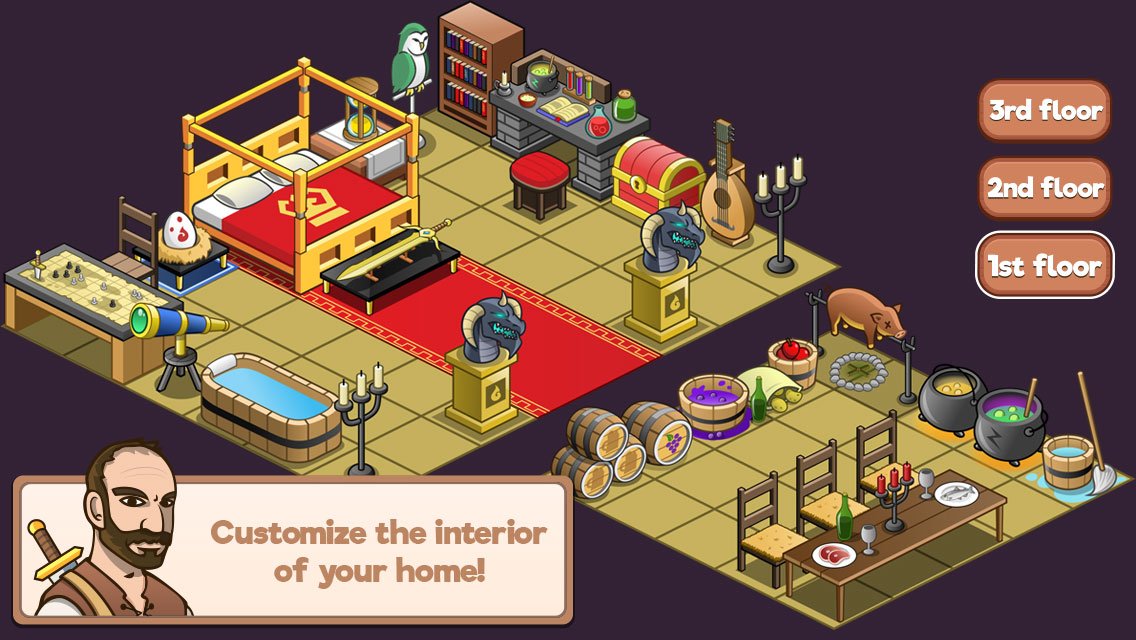 Игрок сможет построить около восьми оригинальных видов Замка. Их можно будет обставить мебелью из более чем 150-ти предметов интерьера средневекового типа. Узнавайте о существовании 60-ти удивительных видов существ, которые пришли из сказок и мифов. На них можно будет охотиться, а потом продавать. Множество интересных квестов, которые будет очень интересно проходить, и около десятка уникальных разновидностей оружия, используемого на охоте. Когда шикарный замок будет готов, можете пригласить в него друзей.