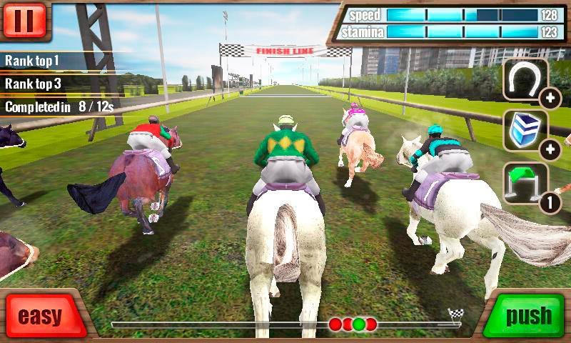 Это самые реалистичные скачки, доступные на мобильных экранах. Вы прямо сейчас можете принять участие в гонках на самых лучших лошадях и постараетесь добиться лучших результатов. Трехмерное качество делает окружающую среду неповторимой, а игроку должно понравиться и звуковое окружение. Если раньше вы могли только ухаживать за лошадьми, то в Скачки 3D - Horse Racing можете участвовать в самых настоящих скачках. Контролируйте управление своим конем и постарайтесь пари каждом заезде показать действительно крутые показатели и поставьте рекорд. Огромное количество уровней, действительно очень много соперников и породистых жеребцов.