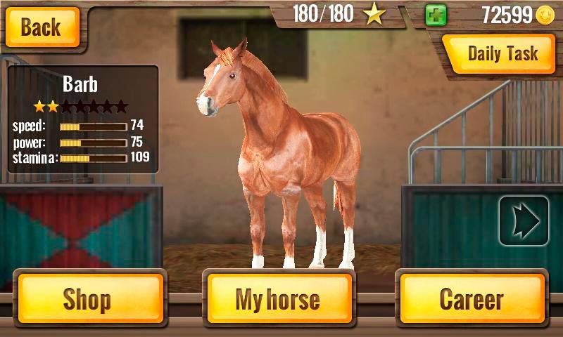 Скачки 3D - Horse Racing – это самые реалистичные на мобильных скачки, в которых вас будут ждать новые приключения. Можете прямо сейчас выбрать своего первого породистого жеребца и проскакать на нем по крутым трассам.