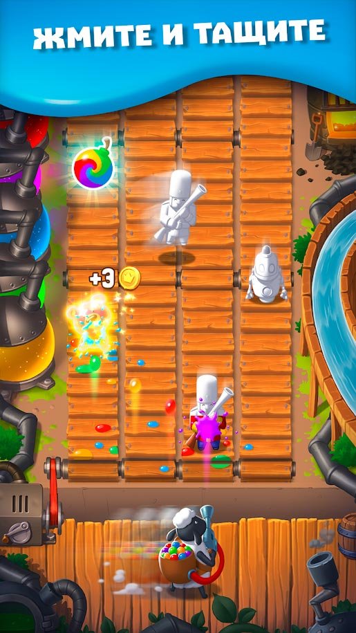 Овечка Вулли готова открыть свою первую фабрику игрушек и с ее помощью заработать огромное количество денежных средств. Займитесь производством самых лучших и милых игрушек, которые потом можно будет продавать, это действительно занимательная игра, где вы испытаете совершенно новые ощущения. В Toy Fun нужно пользоваться простейшими действиями, такими как кликать и перетаскивать. Таким образом, будут производиться, и готовиться к дальнейшей реализации самые лучшие товары, собранные по всему миру. Естественно, игрушки будут выходить с конвейера совершенно серыми, а игроку необходимо будет их раскрашивать в потрясающие расцветки. Направляйте покрасочную пушку по игрушке и простым кликом выстреливайте целой волной цветов яркого оттенка. В Toy Fun сочетается сразу две системы аркады и кликера, что должно приворожить внимание всех. В процессе за такую работу можно будет собрать огромное количество монеток и даже сразиться с лучшими игроками по таблице рейтинга в режиме реального времени.
